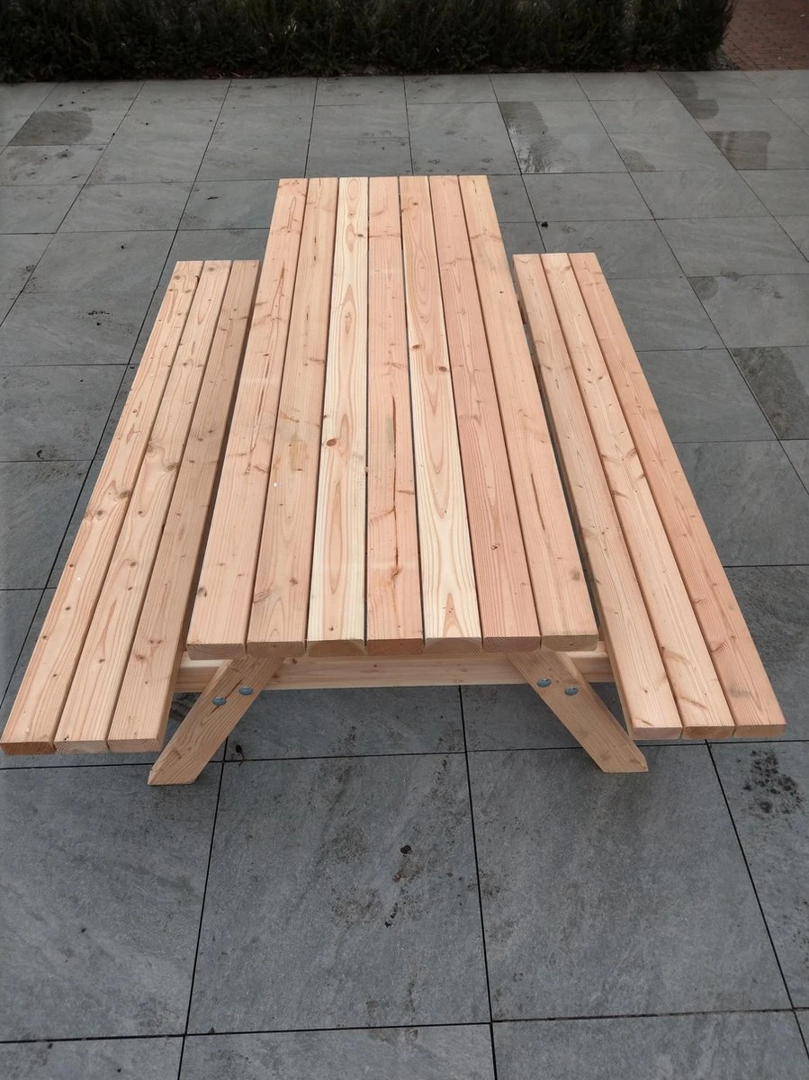 Picknicktafel wordt in een eenvoudig pakket geleverd die makkelijk in elkaar te zetten is.