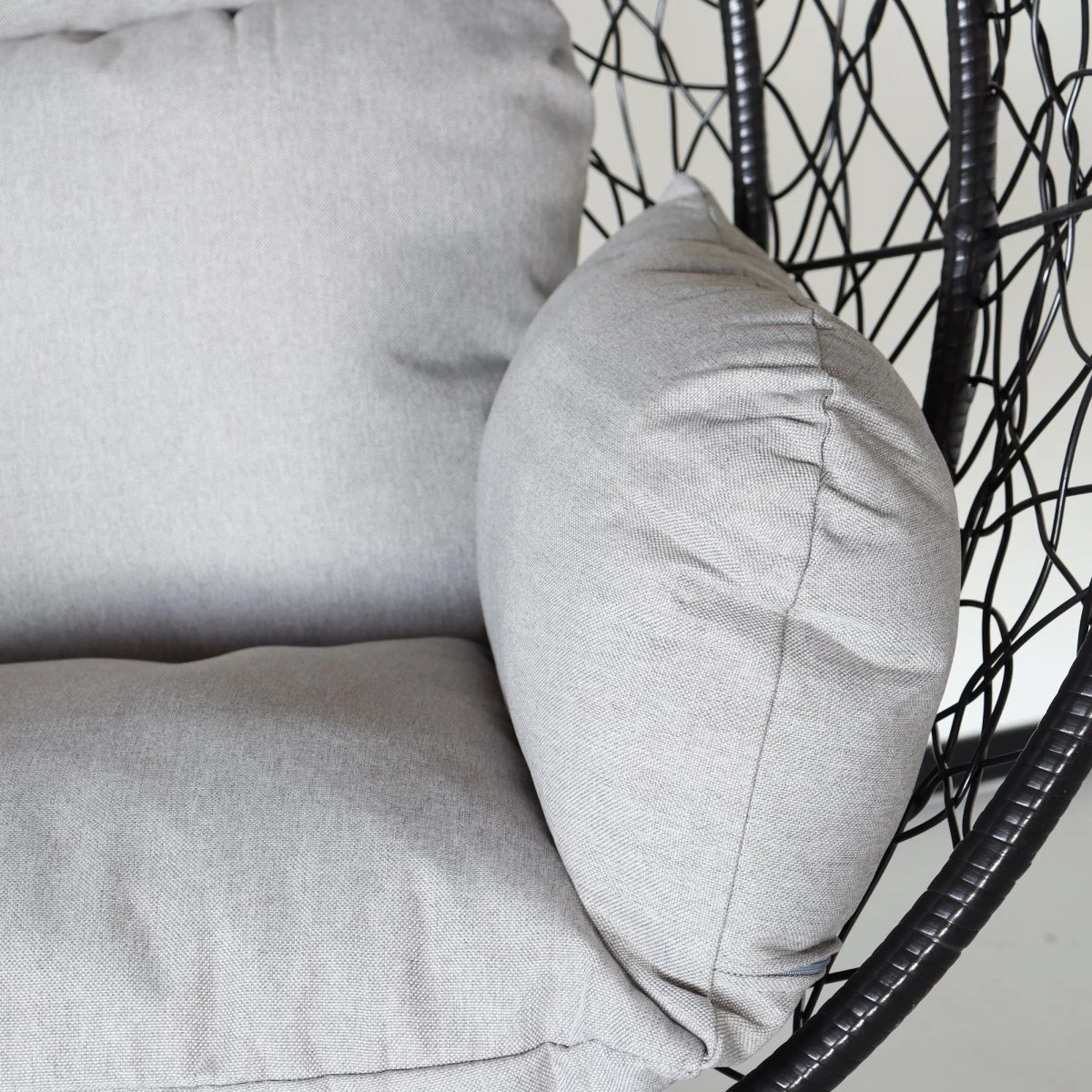 Deze moderne grijze hangstoel heeft een mooie Egg vorm. Hierdoor kan deze hangstoel voor zowel werk als voor ontspanning gebruikt worden. Het frame van de stoel is gemaakt van metaal, de stoel zelf is gemaakt van Wicker met metalen ondersteuningen. Hierdoor kan de hangstoel zowel binnen als overkapt buiten geplaatst worden, mits jij er zorg voor draagt dat deze schoon en droog staat. Het is namelijk nog steeds metaal, wat in een vochtige omgeving kan gaan roesten! Deze stoel staat leuk in zowel de woon- en slaapkamer als in de tuin. Geniet van de zonnestralen terwijl je lekker aan het lezen bent of lees voordat je naar bed gaat nog even comfortabel in deze hangstoel. Ook leuk voor kinderen om in de slaapkamer te hebben!