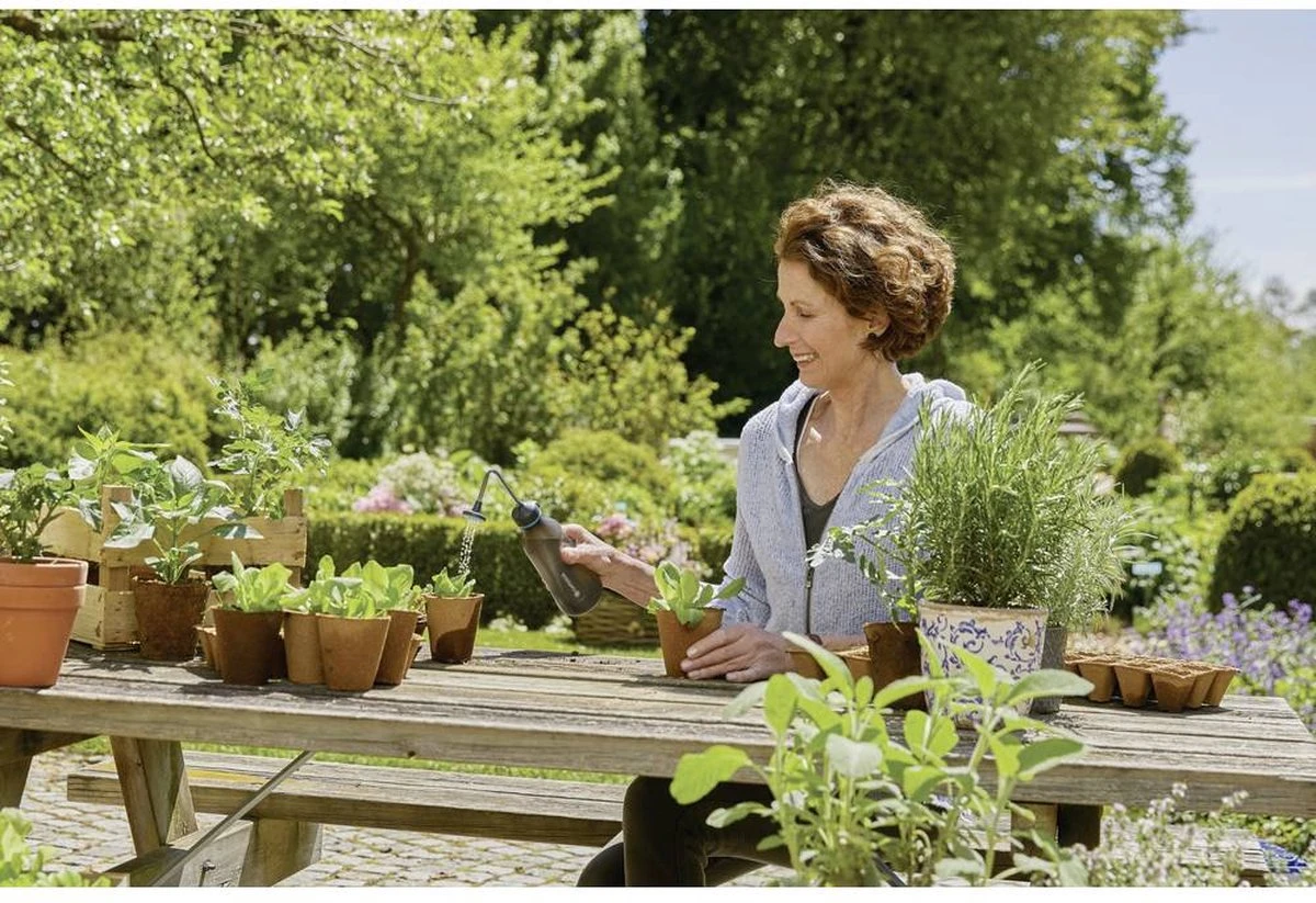 Het eerste groen van een zaailing is altijd een prachtig gezicht. Met de juiste beregening door de zachte sproeier van GARDENA groeien de zaailing succesvol op. Bijzondere kenmerken * Met de zachte sproeier kunt u uw zaailingen op doelgerichte, zachte manier van water voorzien door middel van druppelbewatering of gewone bewatering. Dit voorkomt bovendien dat kleine planten en aarde worden weggespoeld. * Kijk uit naar het gebruik van de handige 2-in-1 functie en voorzie de zachte sproeier van een druppelmondstuk of een sproeikop. Dit geeft u veel flexibiliteit bij het bewateren van uw zaailingen. * U hebt het druppelmondstuk en de sproeikop altijd bij de hand omdat de sproeier is uitgerust met een geïntegreerde bergruimte. * De behuizing is gemaakt van doorschijnend materiaal, zodat u in het reservoir van 450 ml kunt zien hoeveel water er nog over is. * Dankzij het handige ontwerp is het apparaat bijzonder gebruiksvriendelijk. Knijp er gewoon in en het water begint te stromen.