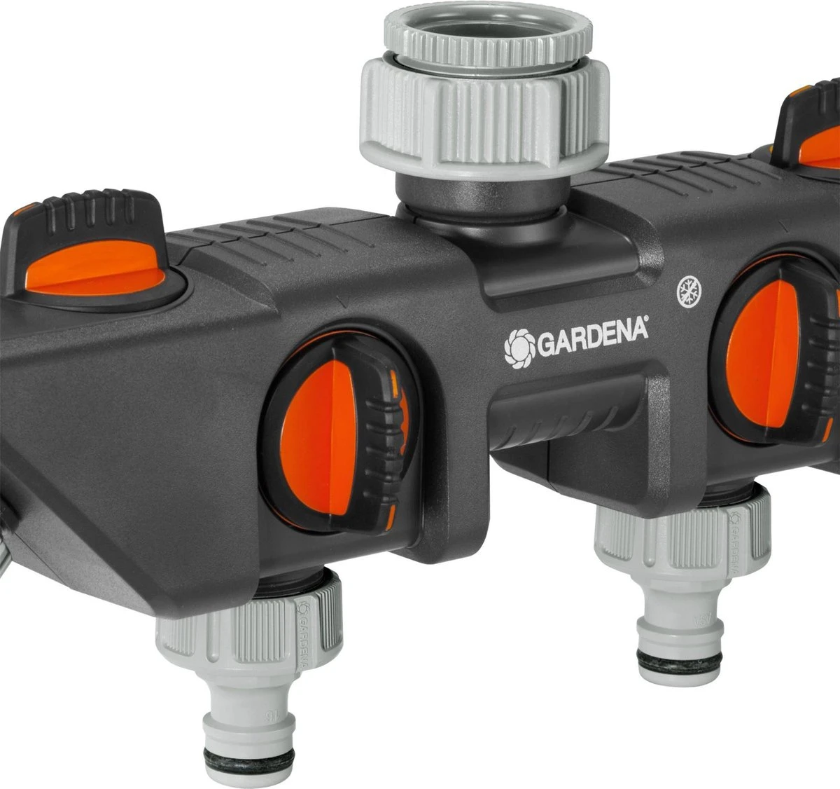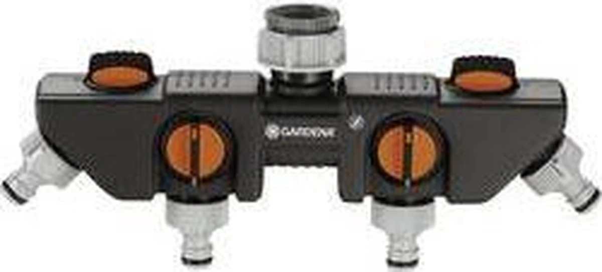 Met de Gardena 4-weg waterverdeler kunt u gelijktijdig diverse accessoires aansluiten op één kraan. De waterafgifte kan voor elke aansluiting afzonderlijk worden geregeld of afgesloten. Op de 4-weg waterverdeler kunnen twee Gardena besproeiingscomputers of watertimers worden aangesloten. De 4-weg waterverdeler kan met het Prof-System kraanstuk (art.nr. 2801-20) worden omgezet in het Gardena Prof-System voor een grotere waterdoorvoer. De Gardena 4-weg waterverdeler is geschikt voor 26,5 mm (g3/4)-waterkraan met en 33,3 mm (g 1)-draad en 21 mm (g 1/2)-waterkraan met 26,5 mm (g 3/4)-draad.