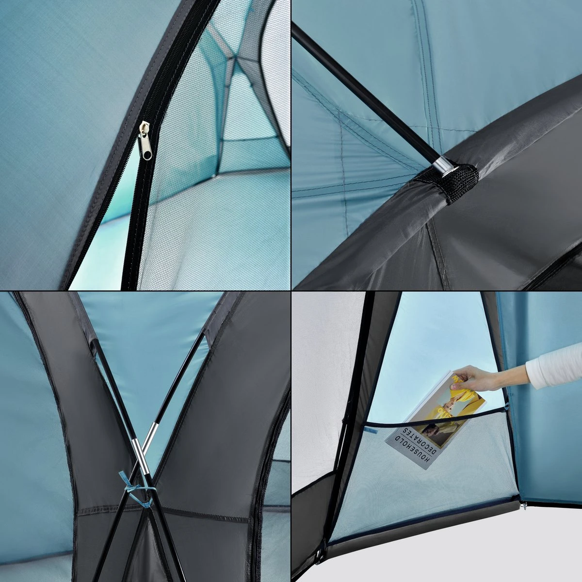 – 4 ademende muskietennetten, met ritssluiting, beschermen tegen insecten