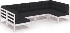 Decoways – 6-delige Loungeset Met Kussens Massief Grenenhout Wit
