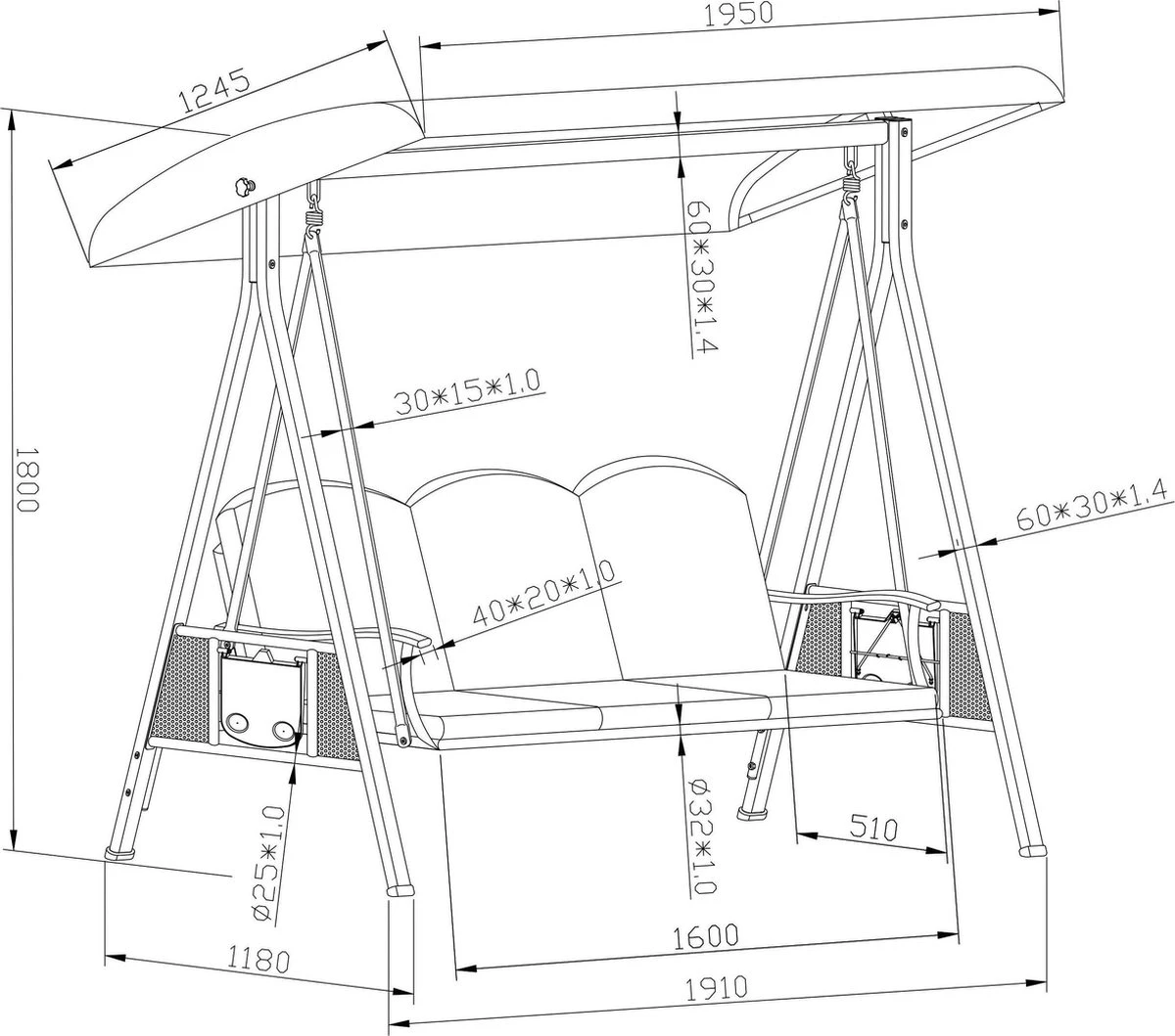 • Afmeting: 195 L x 125 B x 180 H cm