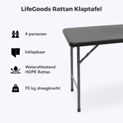 LifeGoods Klaptafel – Inklapbaar – 70x180cm – Verstelbare Vouwtafel – Weerbestendig – Zwart